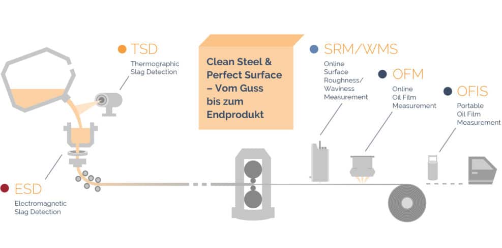 Ob Aluminium oder Stahl, die Oberflächencharakteristik wird immer prozessrelevanter und die Anforderungen der Kunden immer produktspezifischer. Mit unseren Rauheits- (SRM), Welligkeits- (WMS) und Ölauflagemesssystemen (OFM und OFIS) haben Sie Ihre Qualität jederzeit im Blick. Kleinste Fehlstellen auf dem Metallband können beim Kunden einen großen Ausschuss bedeuten. Im Karosseriebau sind mit den heutigen Designanforderungen und modernen Dünnschichtlacken kleinste Fehler auf Blechen am Endprodukt sofort sichtbar.